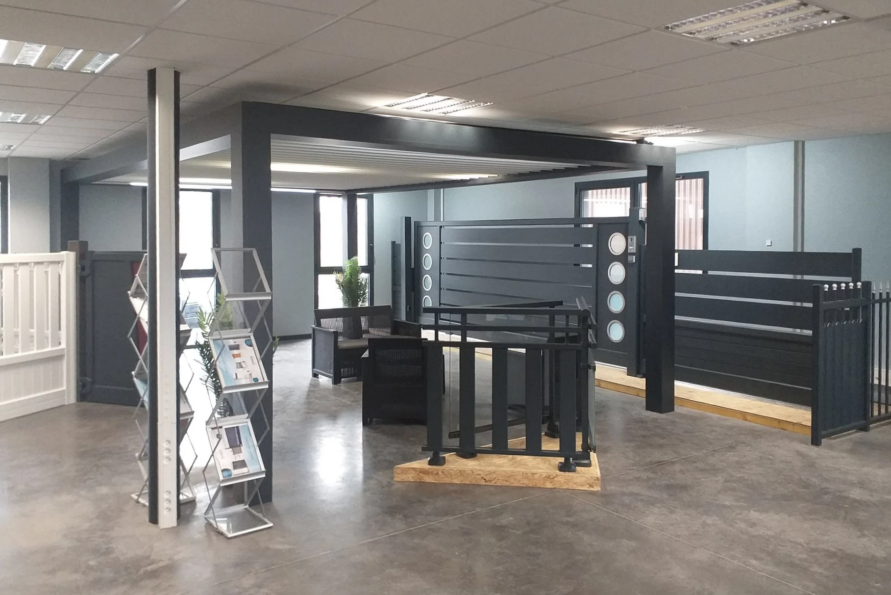 Notre showroom à Rioz vous permet de découvrir notre gamme de menuiseries extérieures. Vous y trouverez des fenêtres en aluminium et en PVC, des portails, des pergolas ainsi que des volets roulants. Touchez les finitions, testez les mécanismes, percevez de façon concrète votre projet de rénovation avant de prendre votre décision.